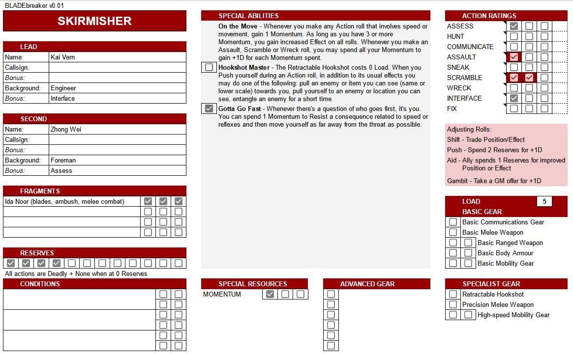 One thing that I did get done before getting sick was update the BLADEbreaker draft to finally start sketching out how the strategy/campaign layer might look like and work on some Downtime activities. I've also started updating all the BLADEbreaker playbooks to match the ones that I had tested out at a previous Playtest Zero event.