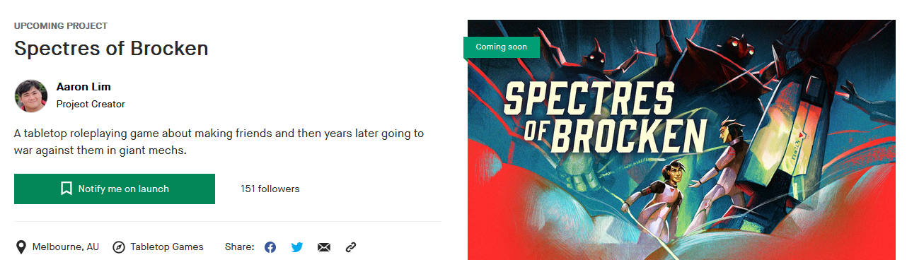 Finally, a fun little thing I did earlier this month was compile all the pilot and mech names that had been used in the various playtest games of Spectres of Brocken to use some as sample names in the Game Seeds section. There have been some absolutely stellar names made by the playtesters, and I actually did use a couple as prompts for one of the artists. You can click through the Tweet to get to the cool names list so I don't inundate you with them here: