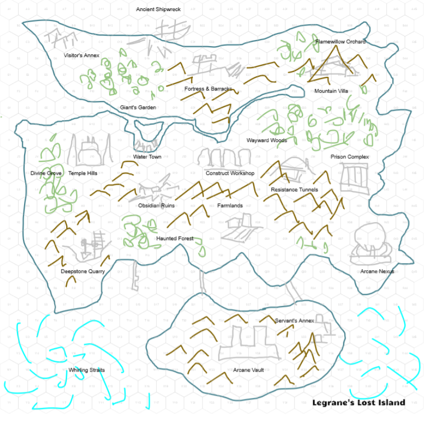 There's been a lot of buzz around Dungeon23. the daily writing exercise put forward by Sean McCoy of writing one room of a megadungeon or similar section of a larger fictional space for the whole of 2023. I'm planning to take part in this as well, though instead of a classic dungeon, I'm planning to use this exercise to flesh out the locations, lore, and loot on Legrane's Lost Island, an adventure setting (I guess?) that I've been toying with for a long while. The basic conceit is that it's a way to play a Battle Royale style game like PUBG or Fortnite (you might notice the map above is based on PUBG's Erangel map), where you get dropped into a place with minimal resources and have to scavenge for them and survive a rapidly closing in storm or hazard while other hostile teams are also trying to do the same thing. I've run some variation of this "adventure" several times before with friends, using Index Card RPG and Dungeon Whatever as the "game system", and I've always wanted to put all my notes together into something that others could use, so Dungeon23 seems like a good motivation to flesh that all out and finally finish the project.