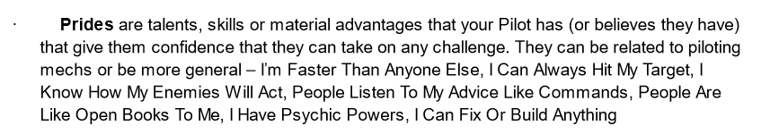 - I finished up the Zero Draft for Spectres of Brocken and handed it over to Rae Nedjadi for developmental editing. This was the big thing I was working on for a bit, which was held up by several delays as I was trying to sort out my work situation and also having to deal with COVID-19 cases in the family. Mostly it was re-structuring and clarifying the playtest/demo version of the rules into a form that worked better for the book, but I did also make a couple of minor tweaks to the rules and procedures based on the additional playtesting in December and January. One was changing up "Potentials" into "Prides", inspired by the framing used in Tales from the Loop. It's still about choosing a skill that your Pilot is good at or is invested in developing, but framing it in a more personal manner, including re-writing the Potentials as "I want/I am" statements e.g. "I Can Always Hit My Target" instead of "Deadeye". The others were mainly cleaning up procedures of when and how to fill in certain bits of the Pilot Sheet as you moved from the Academy to the Conflict Phase.
